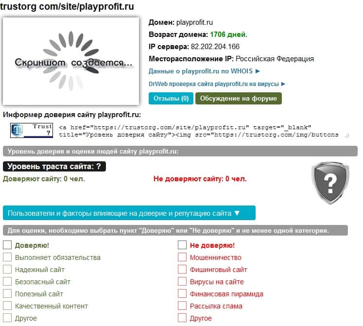 В рунете есть такой известный оценочный сайт, как Доверие в Сети. На нем каждый человек может поставить свою оценку работе любой компании. Как и следовало ожидать, все оценки деятельности мошенников PlayProfit отсюда удалены. Это сразу должно ставить перед клиентом много вопросов, но, увы, это не всегда происходит.