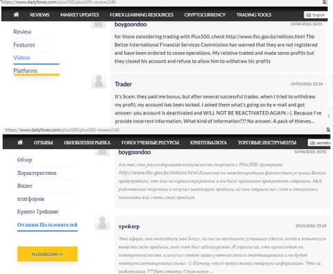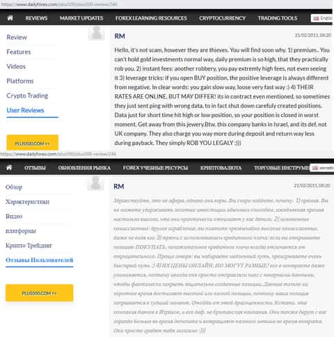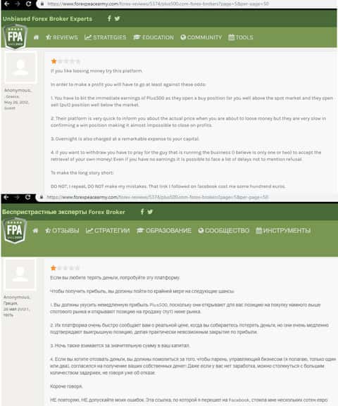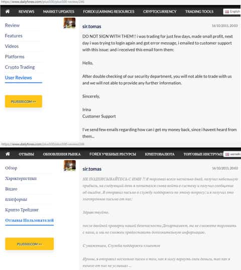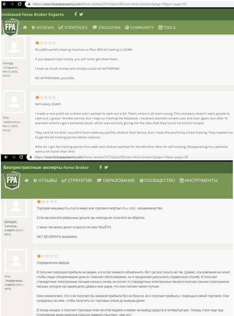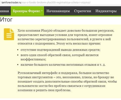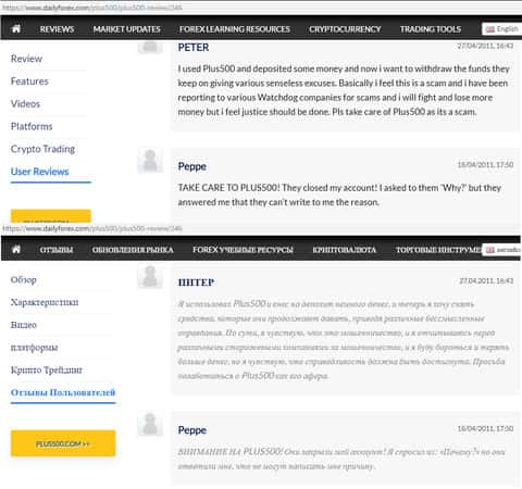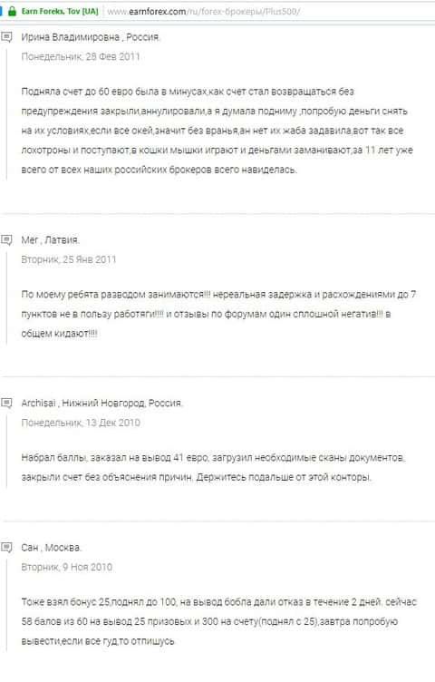 - Еще несколько негативных отзывов о конторе Plus500 на иностранном ресурсе