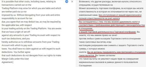 Шарлатаны из брокерской конторы Плюс 500, согласно Пользовательскому соглашению, размещенному на официальном сайте компании, дает себе право удерживать налог в соответствии с требованием законодательства в отношении к клиентской торговой деятельности. То есть контора может выдумать какой-то налог, который существует в стране где живет клиент и начать вычитать его со счета на балансе. А то что клиент должен сам оформляться и платить налоги самостоятельно ничего не сказано. Еще одно указание клиенту, что он не должен предъявлять компании Plus500 никаких претензий по этому вопросу, они снимают - а клиент должен молчать!