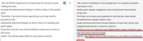 Еще один интересный момент, который настораживает. Он есть и в пользовательском соглашении и в документе уведомления о рисках. Контора Плюс 500 очень переживает за деньги клиента и поэтому постоянно предупреждает о возможности маржинкола. Наверное это у них один из методов слива депозита. Никто же не знает, что там в моменте происходит, а раз они отнекиваются от таких инцидентов заблаговременно, значит они часто используют свои кухонные способы. Как говорится воруй на самом видном месте! И очень интересны документы тем, что везде описана ответственность клиента, а по поводу ответственности кухни Plus500 ни слова.