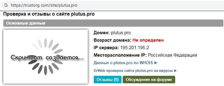 На информационном сайте trustorg com была произведена проверка ip-адреса мошеннической организации Плутас. Выяснилось, что возраст домена их фейкового сайта невозможно определить. Доверять подобным сомнительным непроверенным и не надежным псевдо-брокерским конторам не рекомендуем !!!