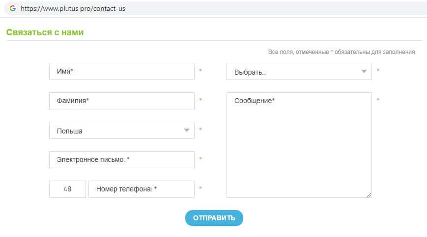 После того, как пользователь заполнил бланк, компания просто так не отвяжется. Не рекомендуем оставлять какие-либо данные о себе на сайте фальшивого брокера Plutus Pro даже в виде адреса электронной почты, поскольку шулера могут манипулировать человеком и воздействовать на принятие решения пользователя торговать на данном сайте.