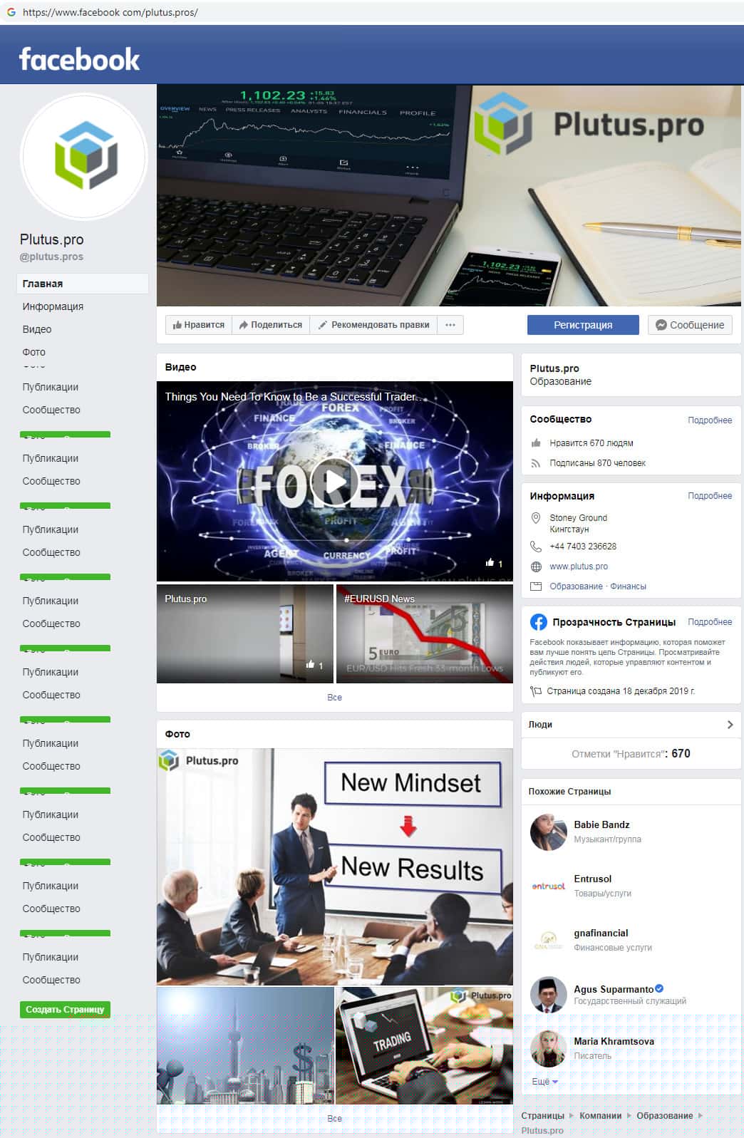 Скам-контора Plutus Pro для привлечения как можно большего количества людей решила создать страницу в социальной сети facebook, где мошенники позиционируют свою образовательную организацию. К сожалению жулики Плутас не предоставили никакой дополнительной информации о своей компании, кроме ссылки на свой дырявый сайт.