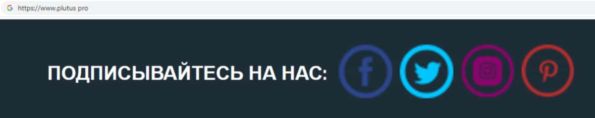 Аферисты Плутас зарегистрировались в различных социальных сетях, а именно Твиттер, Фейсбук, Инстаграм, а так же на сайте pinterest ca. При помощи созданных страниц в социальных сетях мошенники Plutus Pro рекламируют свою компанию. Не ведитесь на развод со стороны данной псевдо-брокерской компании !!!