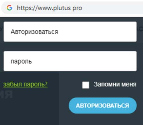 Ваши личные данные на сайте жульнической организации Плутас никак не защищены, поскольку для входа в кабинет необходимо указать только адрес электронной почты и пароль, которые очень легко рассекретить. Ваши личные данные для входа в кабинет всегда хранятся на сайте аферистов Plutus Pro, которые могут сами слить Ваши денежные средства.