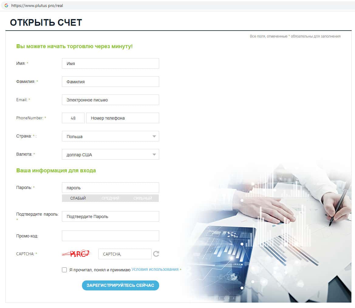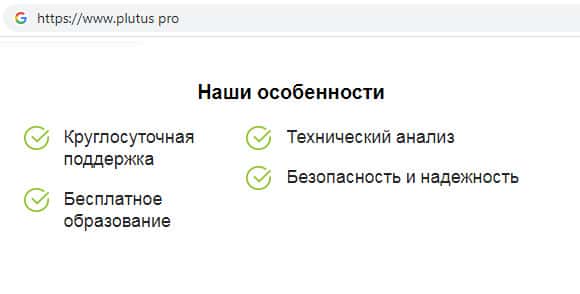 Мошенники Плутас дают множество обещаний для того, чтобы создать иллюзию надежной компании, особенно о безопасности использования брокерских услуг их скам-конторы. Шулера Plutus Pro мотивируют людей открыть торговый счет как можно быстрее, что на самом деле не безопасно.