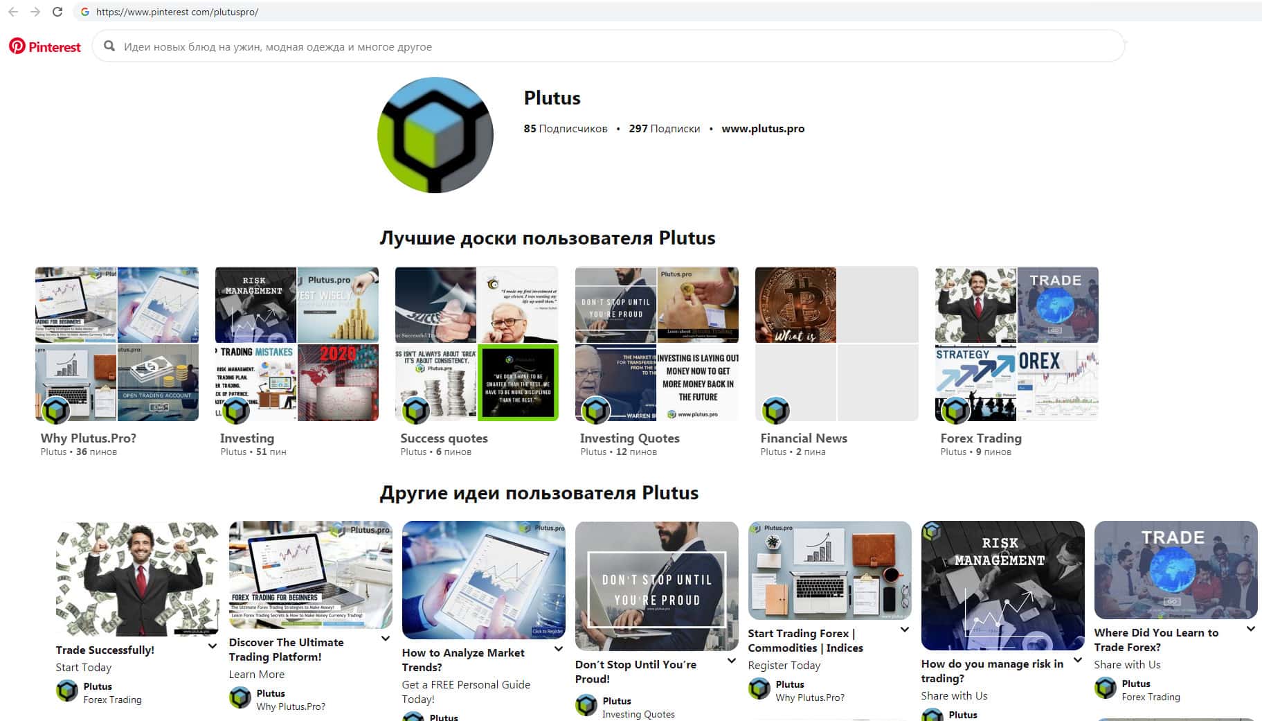 Скам-организация Плутас так же зарегистрирована на социальном интернет-ресурсе pinterest com, где в основном информация новостного характера и исключительно на английском языке. Это является подтверждением тому, что сайт шулеров Plutus Pro не подходит для русскоязычных пользователей всемирной паутины.