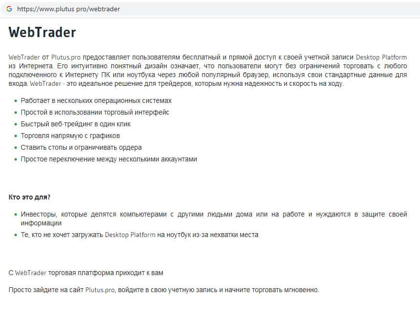- Торговая платформа псевдо-брокерской организации Плутас