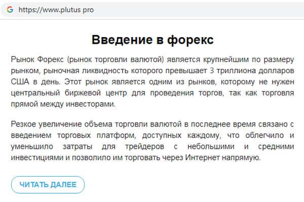 - Сказочные обещания аферистов Plutus Pro о возможности торговли на рынке Форекс