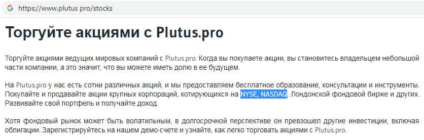 На сайте жульнической конторы Plutus Pro информация о том, что данный скам-брокер предлагает торговать акциями компаний, которые не имеют никакого отношения к данной скам-организации. Шулера Плутас врут о том, что им эти компании доверяют. Вероятнее всего перечисленные организации даже не догадываются об этом.
