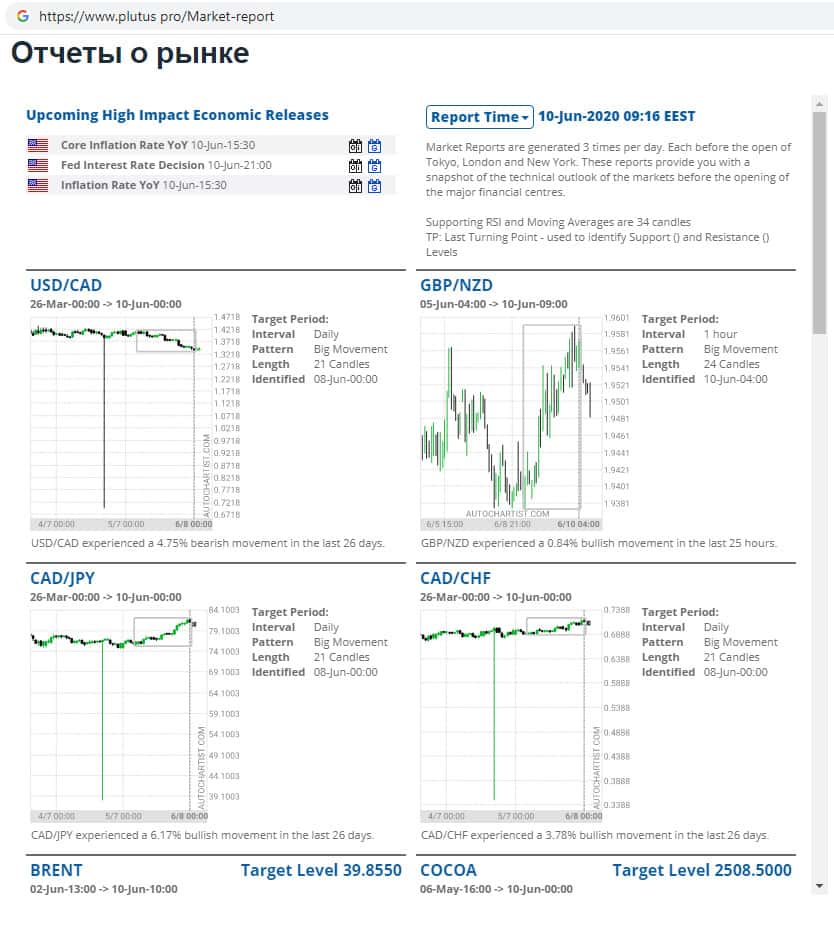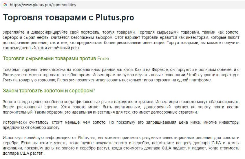 Мошенники Plutus Pro на своем фальшивом интернет-ресурсе опубликовывают ежедневные прогнозы роста и падения цен на сырье, нефть, акции, золото и так далее. Все это делается для того, чтобы втереться в доверие наивных пользователей глобальной интернет-сети, которые верят в прибыль из неоткуда.