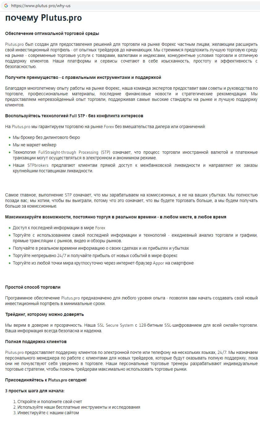 - Обзор официального сайта псевдо-брокерской организации Плутас