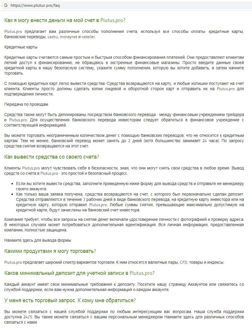 В случае возникновения каких-либо проблем связанных с выводом денежных средств, мошенники Plutus Pro всегда будут ссылаться на предлагаемые ответы. Шулера Плутас аргументируют это тем, что ответы на Ваши вопросы уже прописаны и у них нет такой возможности более подробно отвечать.