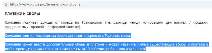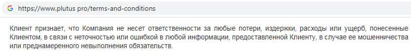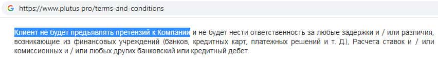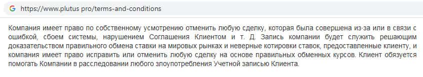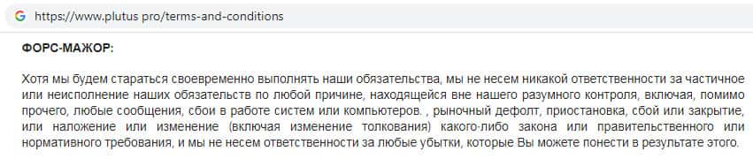 - Условия пользования сайтом жульнической конторы Plutus Pro