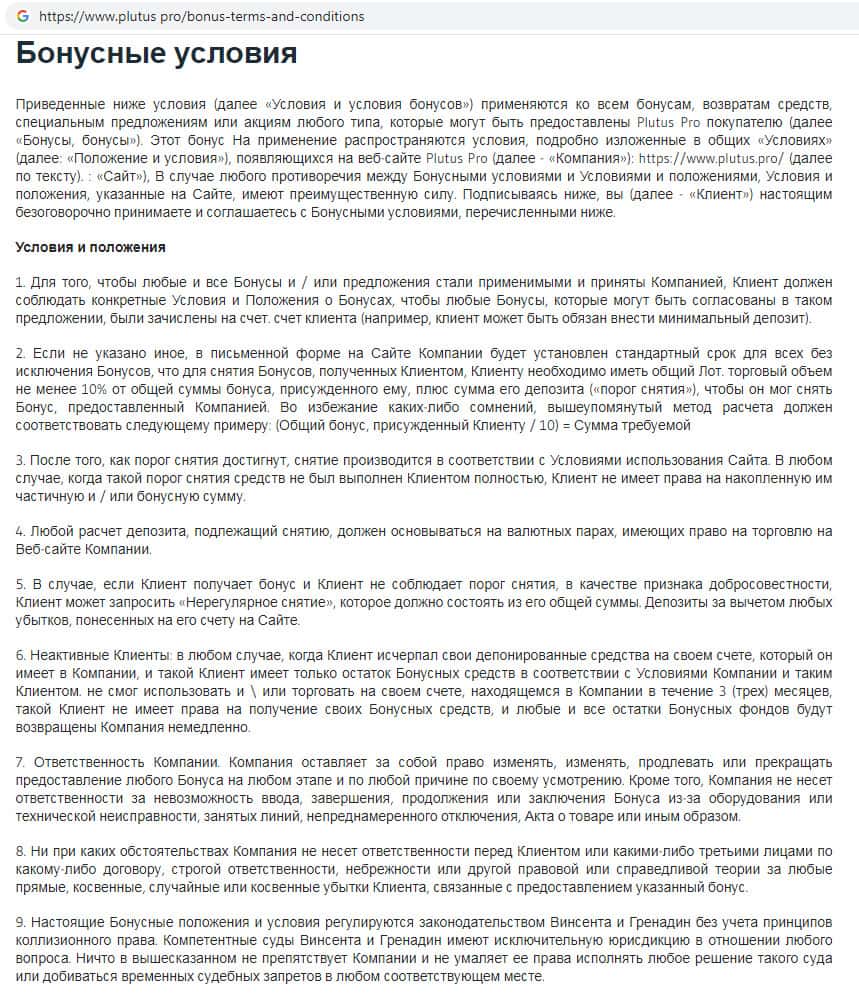 - Политика начисления бонусных средств на сайте мошеннической организации Plutus Pro