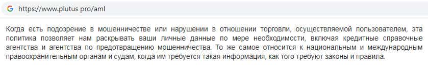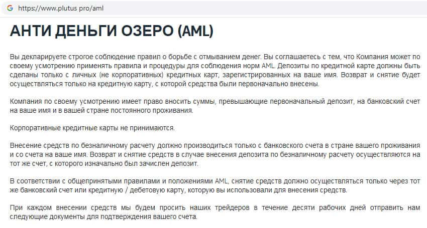 Мошенники Plutus Pro пытаются создать видимость того, что ведут борьбу с отмыванием денежных средств. Данный документ, именно в таком виде как предоставили жулики Плутас, имеется у каждой жульнической конторы, которая пытается доказать честность и надежность предоставления услуг своей компании.