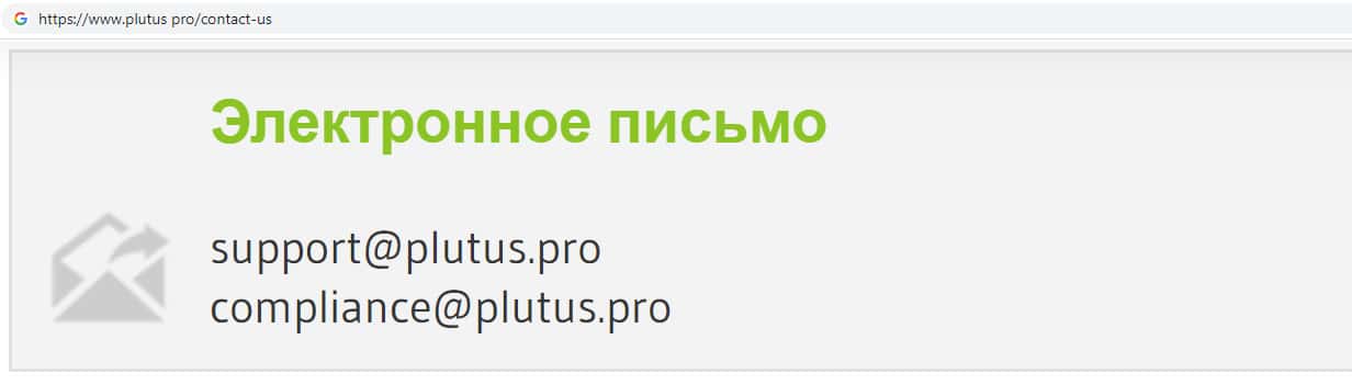 - адреса электронной почты брокерской конторы Плутас: support@plutus pro, compliance@plutus pro