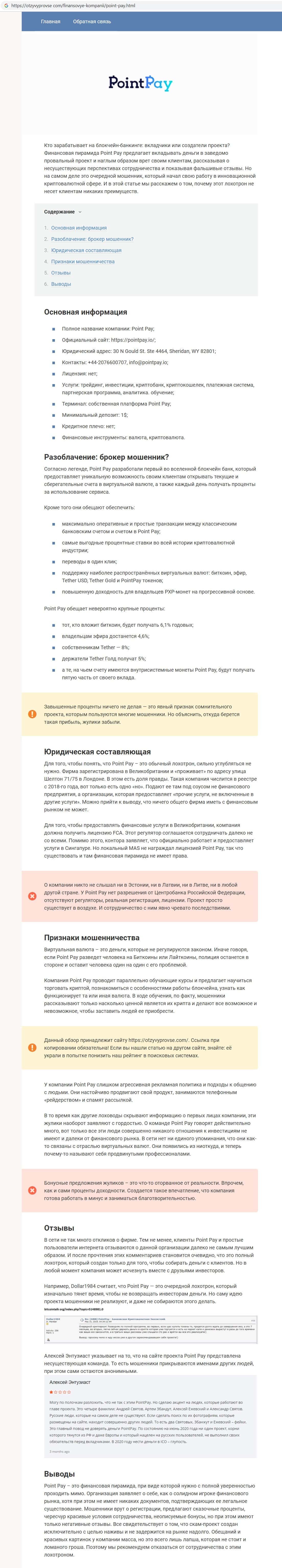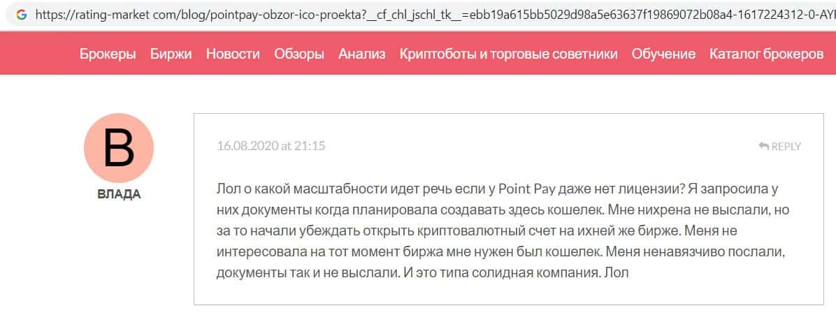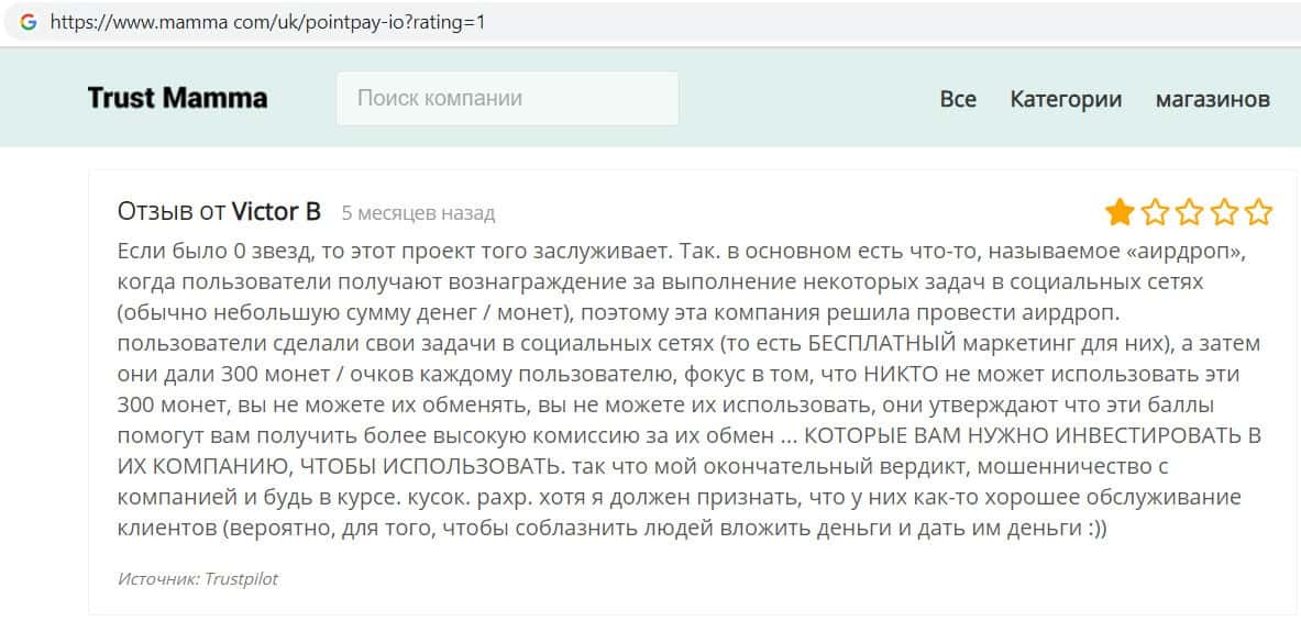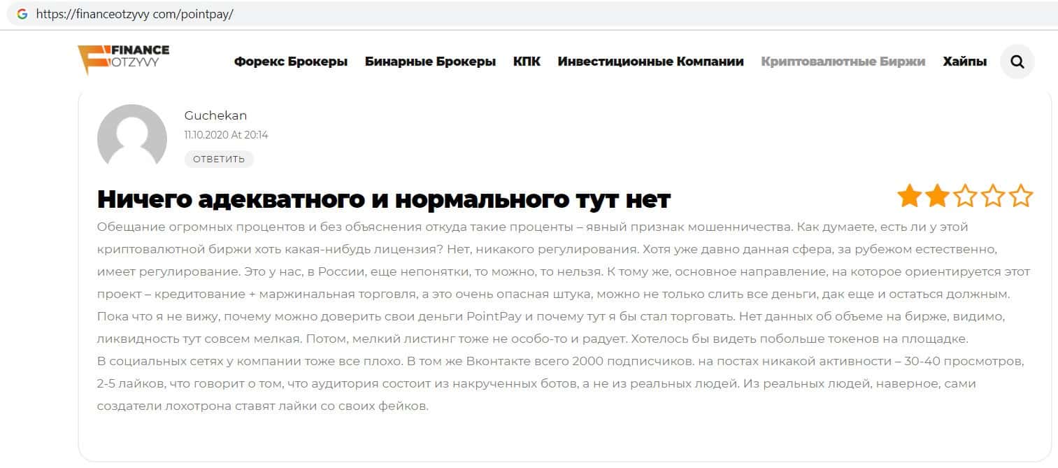 - Мнение интернет ресурсов о конторе махинаторов PointPay