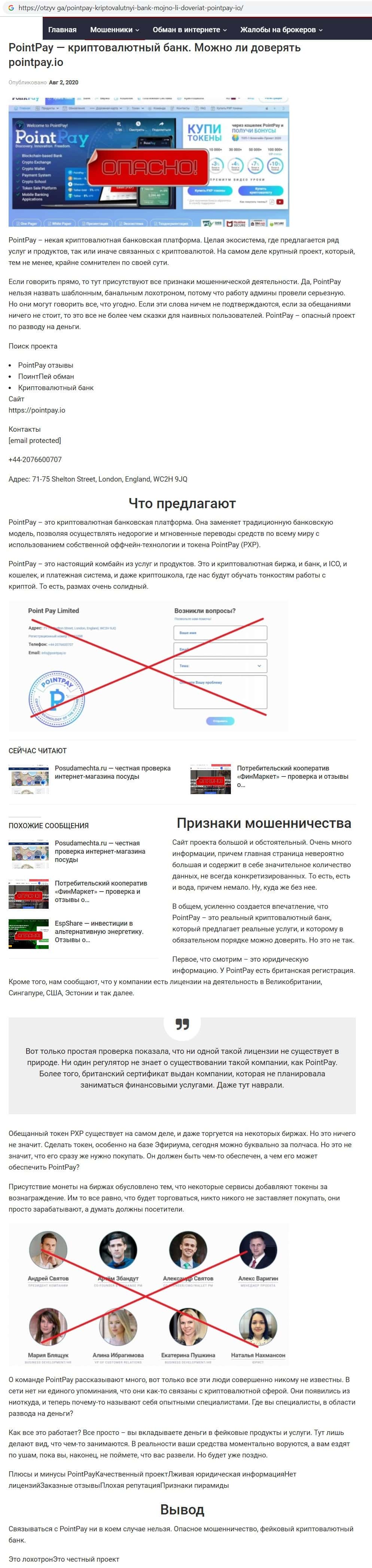Интернет ресурс forex-scam org опубликовал статью о фирме PointPay. В данной статье сайт указал, что фирма является самым настоящим мошенником, который разводит клиентов.