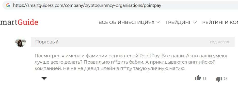 - Отзывы интернет - пользователей о фирме жуликов PointPay