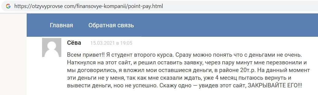 Ссылки на источники информации о финансовых кидалах Поинт Пэй: