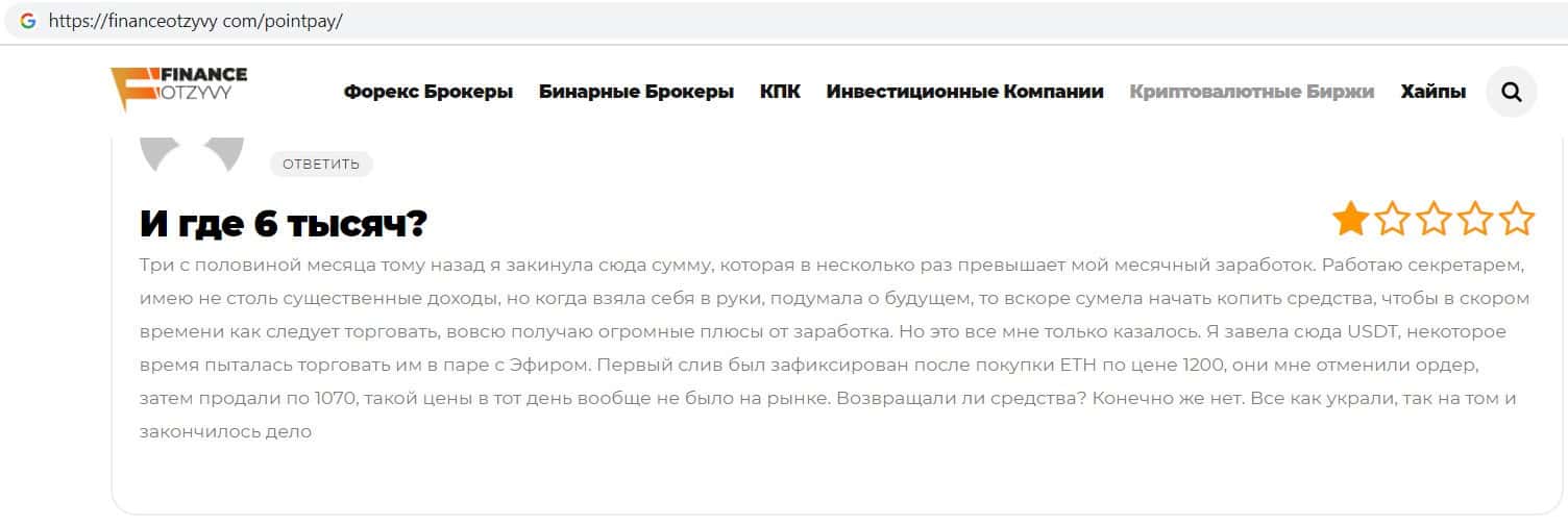 Отзывы интернет - пользователей о фирме жуликов PointPay