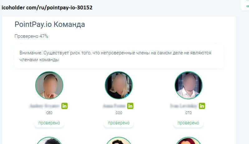 Шарлатаны конторы PointPay решили выставить на своем сайте весь состав своей команды. Это как бы внушает доверие к псевдоброкеру. Но стоит детально изучить данную информацию и возникает масса пробелов. Многие сотрудники шаражки PointPay не прошли идентификацию. Лишь 47% сотрудников шараги PointPay прошли идентификацию.Лоховоды PointPay могли нанять актеров на роль сотрудников.