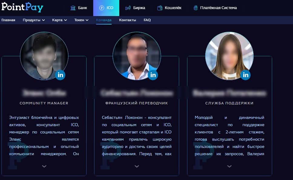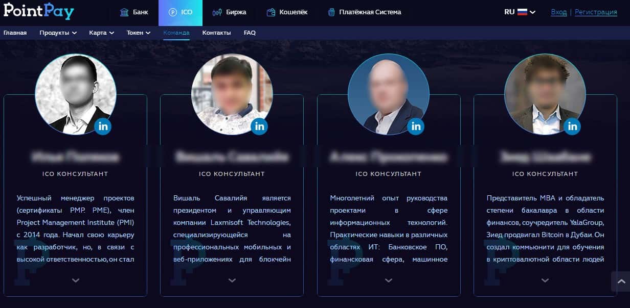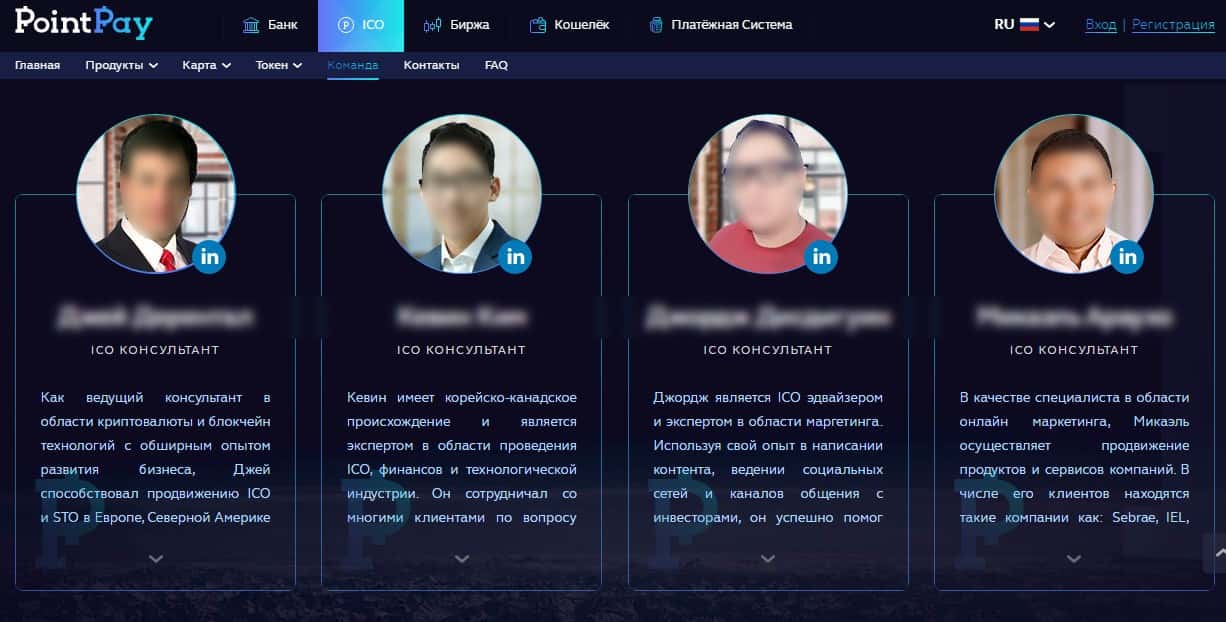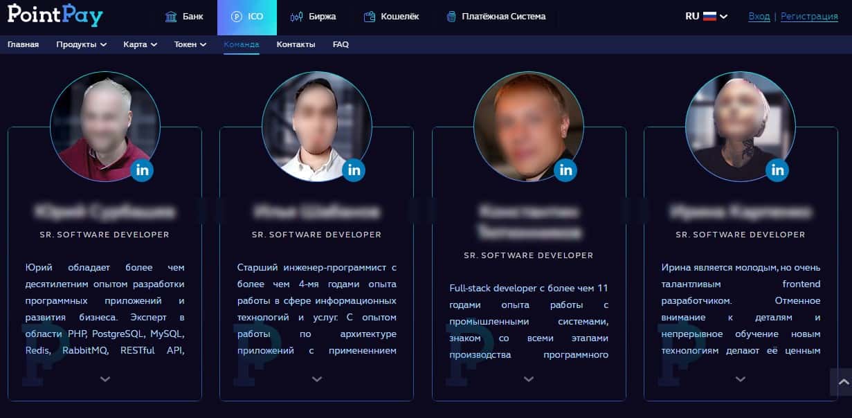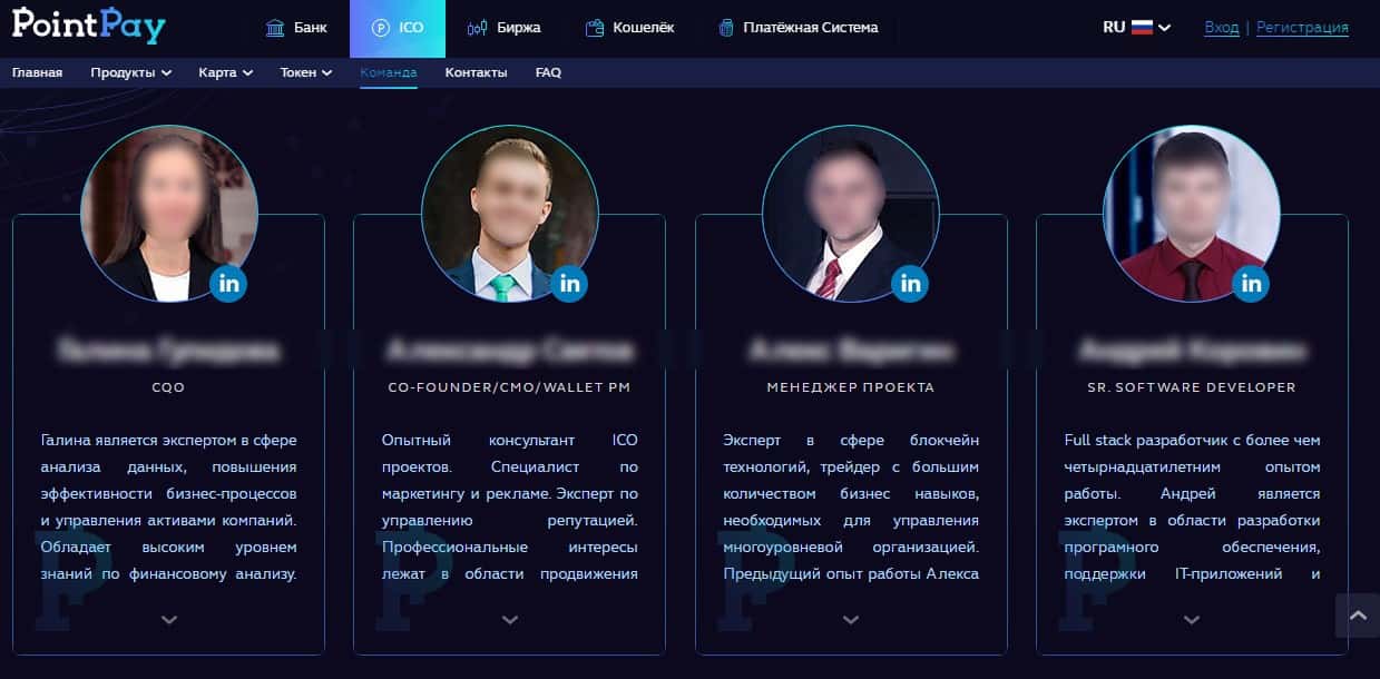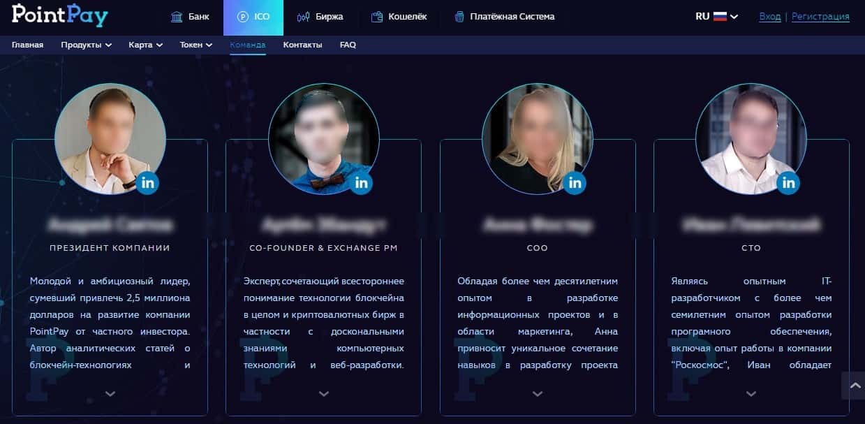 Все члены команды лохокухни PointPay представлены на официальном сайте.