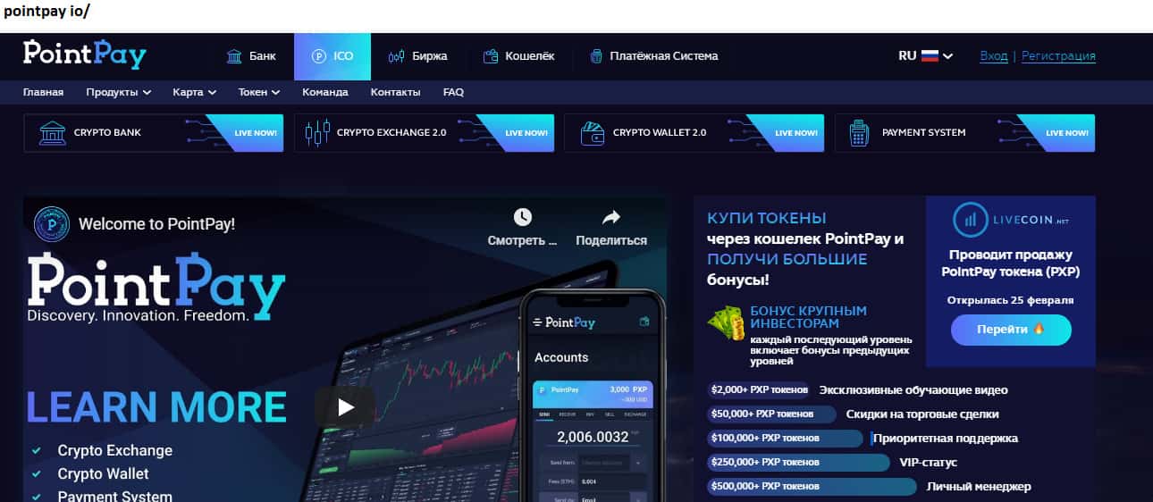 Мошенническая контора PointPay замахнулась на большие планы и позиционирует себя как 3 в 1: криптобиржа, криптобанк и криптокошелек. В реальности - это был бы просто крутой проект! Но не все так чисто и гладко! На финансовом рынке все проекты ICO заканчиваются полным провал, оказываясь по сути обычной финансовой пирамидой!