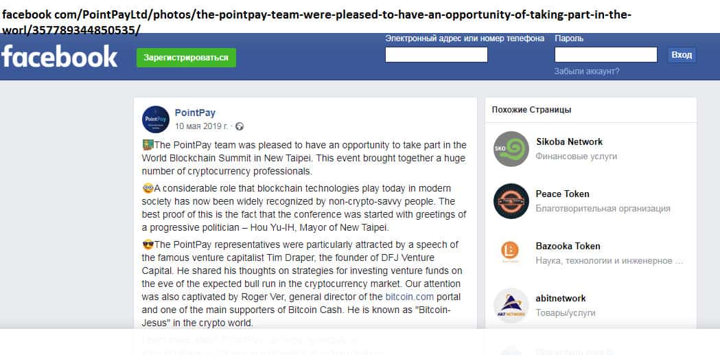 - официальная страница шарамыжников PointPay на Facebook, facebook com/PointPayLtd