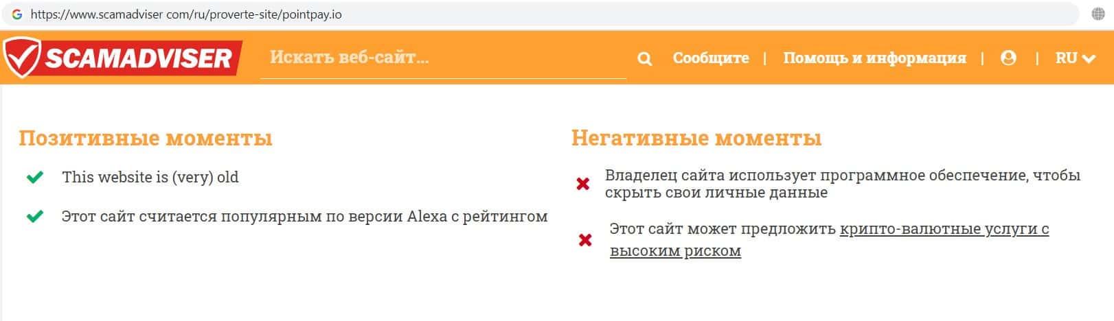 - Мнение интернет ресурса scamadviser com о сайте махинаторов Поинт Пэй