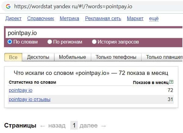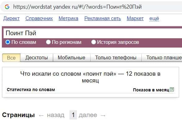 Проверить мы решили и количество запросов разводил Поинт Пэй по русскоязычному названию, но без пробела, а именно "ПоинтПэй", но результат оказался нулевым.