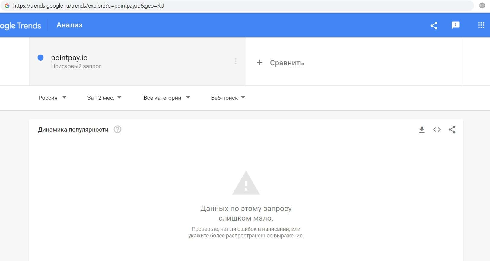Так же мы проверили количество запросов конторы жуликов PointPay по русскоязычному названию фирмы, а именно "Поинт Пэй". Всего 12 раз пользователи выполнили данный запрос.
