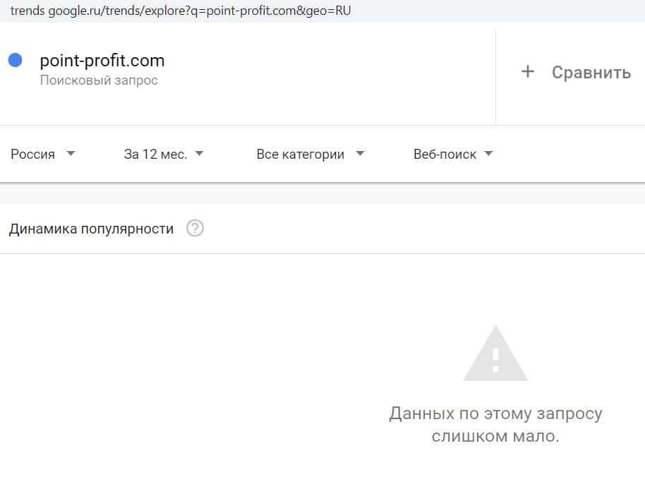 Доменное имя мошеннического сайта "point-profit.com" вбивали в поисковую систему Гугл слишком редко, поэтому данных по этому запросу практически нет.