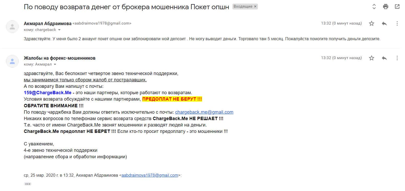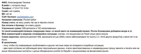 - В конторе Покет Опцион кидают в наглую людей - эти аферисты разводят даже на 50$