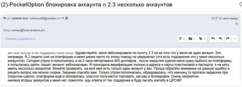- Клиенту брокерской кухни Покет Опцион заблокировали счет с деньгами