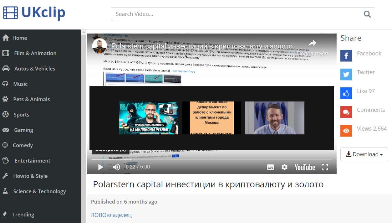 Сайт ukclip.info разместил у себя несколько видеороликов о площадке Поларштерн Кэпитал. Обзорщик с Ником ROBOвладелец рассказывает в одном из них о том, какая замечательная компания Polarstern.capital, как у них все хорошо, и что он и его друзья уже инвестировали значительные суммы в этот суперпроект.