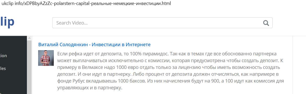 - Комментарии с сайта ukclip infакаo под видеороликом о проекте Поларштерн Кэпитал