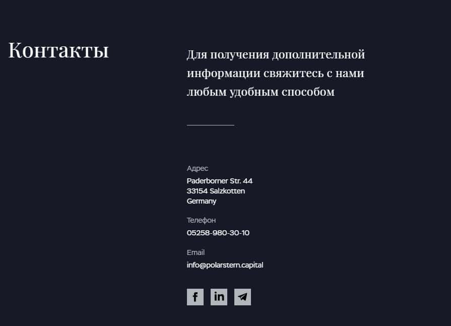 Что касается связи с организаторами конторы polarstern capital, то здесь все просто. Вы можете написать на электронную почту, в один из аккаунтов в соцсетях, или же позвонить по телефону.Что думает автор статьи об этой мошеннической конторе разводил?