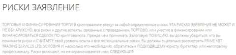 Для того чтобы выглядеть примерным брокером, контора Прайм Х БТ использует различные отмазки и замыливания глаз в виде Предупреждений о рисках, вместо лицензии. Там описано множество различных моментов, при которых мошенники списываю с себя всю ответственность и возлагают на плечи своего клиента.
