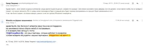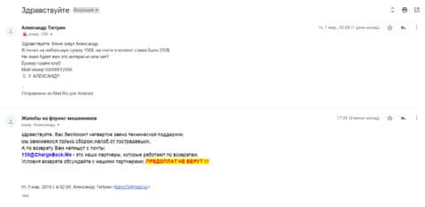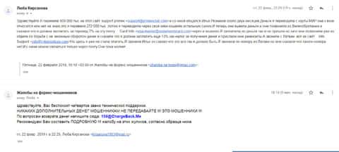Вот еще одна жалоба о том, как жулики форекс-лохотрона Prime X Club обворовали человека, который попался к ним через рекламу. Он вложил почти 250 долларов, а потом шулера стали просить еще вложить 40 000 рублей, в чем и поймал подозрения в мошенничестве. Чтобы вернуть деньги он написал заявления на интернет-ресурс ChargeBack.Me где пообещали разобраться в этом.