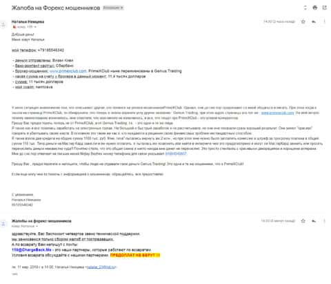 Жалоба на контору PrimeX Club - утрачено более 10 000$