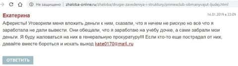 Пользователи, попавшиеся на уловки мошенников Прайм Икс Клуб, предупреждают не вестись на фальшивые обещания псевдоброкеров. Заманивая людей, остро нуждающихся в деньгах, вложить деньги на их платформу, аферисты нагло сливают себе счета своих клиентов.