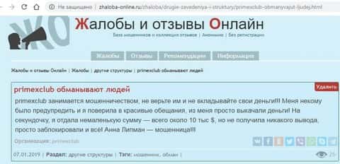 Еще больше негативных отзывов о жульнической конторе Prime X Club