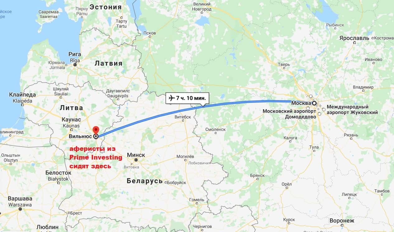 Шулерская организация Prime Investing зарегистрирована в Литве, в Вильнюсе. Возможно, этот адрес фейковый, так как мошенники часто пишут отсебятину на своих сайтах.