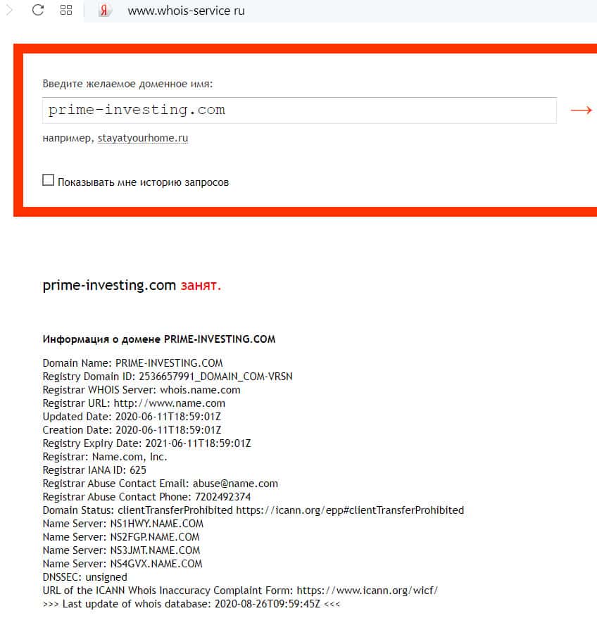 - Кому принадлежит доменное имя сайта prime-investing com?