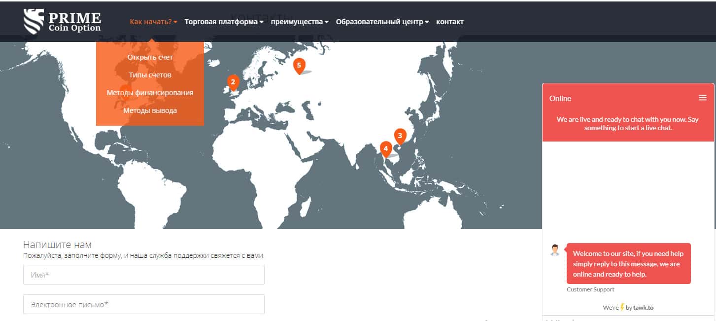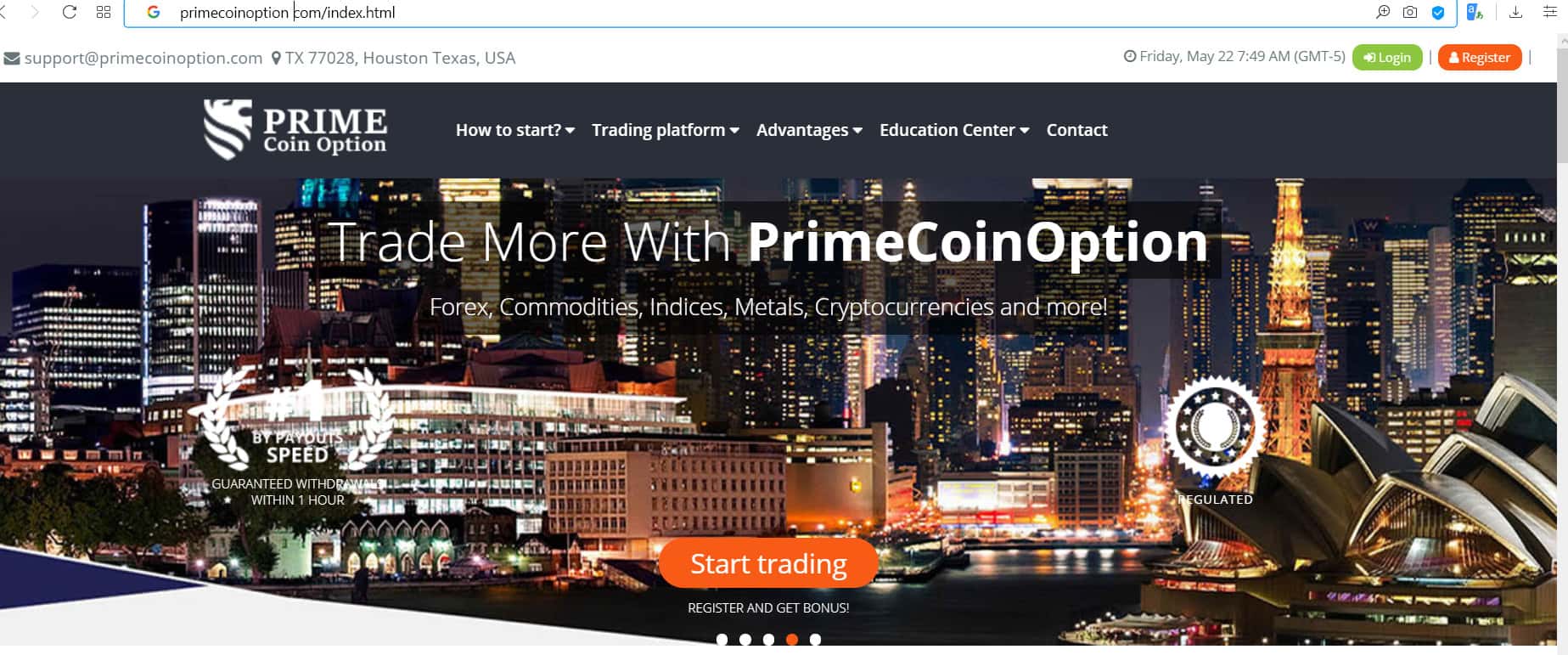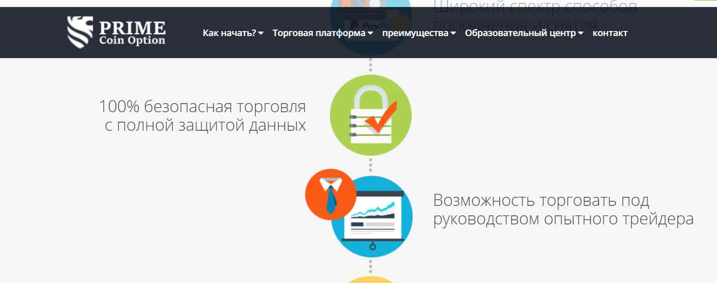 - Как выглядит сайт брокерской компании PrimeCoinOption?