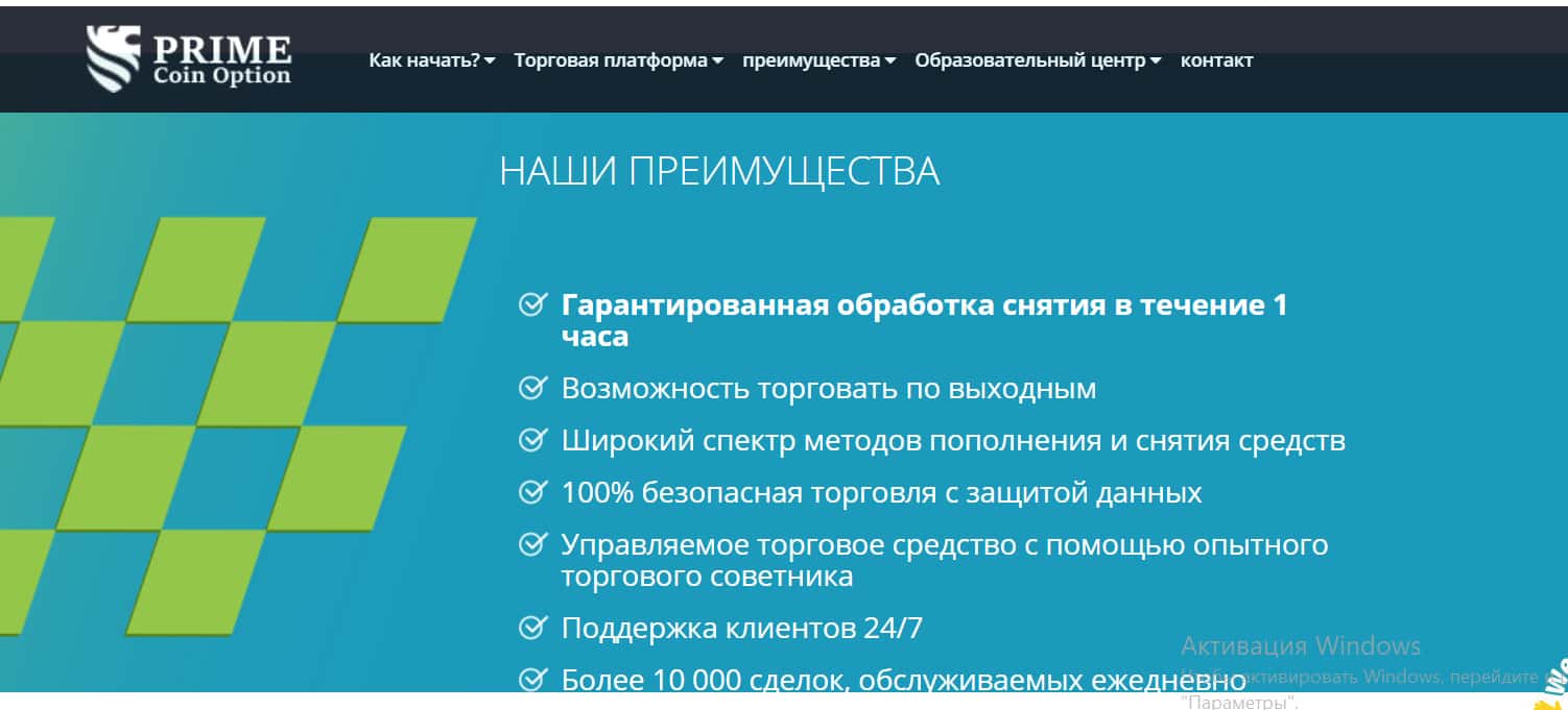 Как видит свои преимущества дилинговая компания Прайм Коин Опцион?