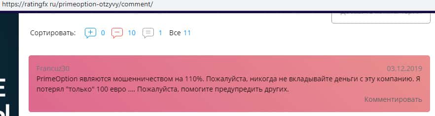 - Лохотрон PrimeOption кинул на деньги еще одного пользователя сети интернет