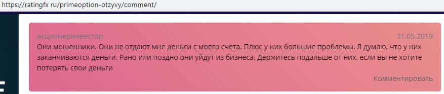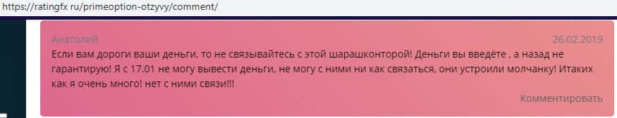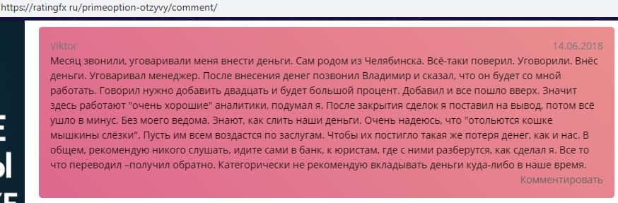 - Отзыв о проходимцах Прайм Опцион с веб-площадки ratingfx ru